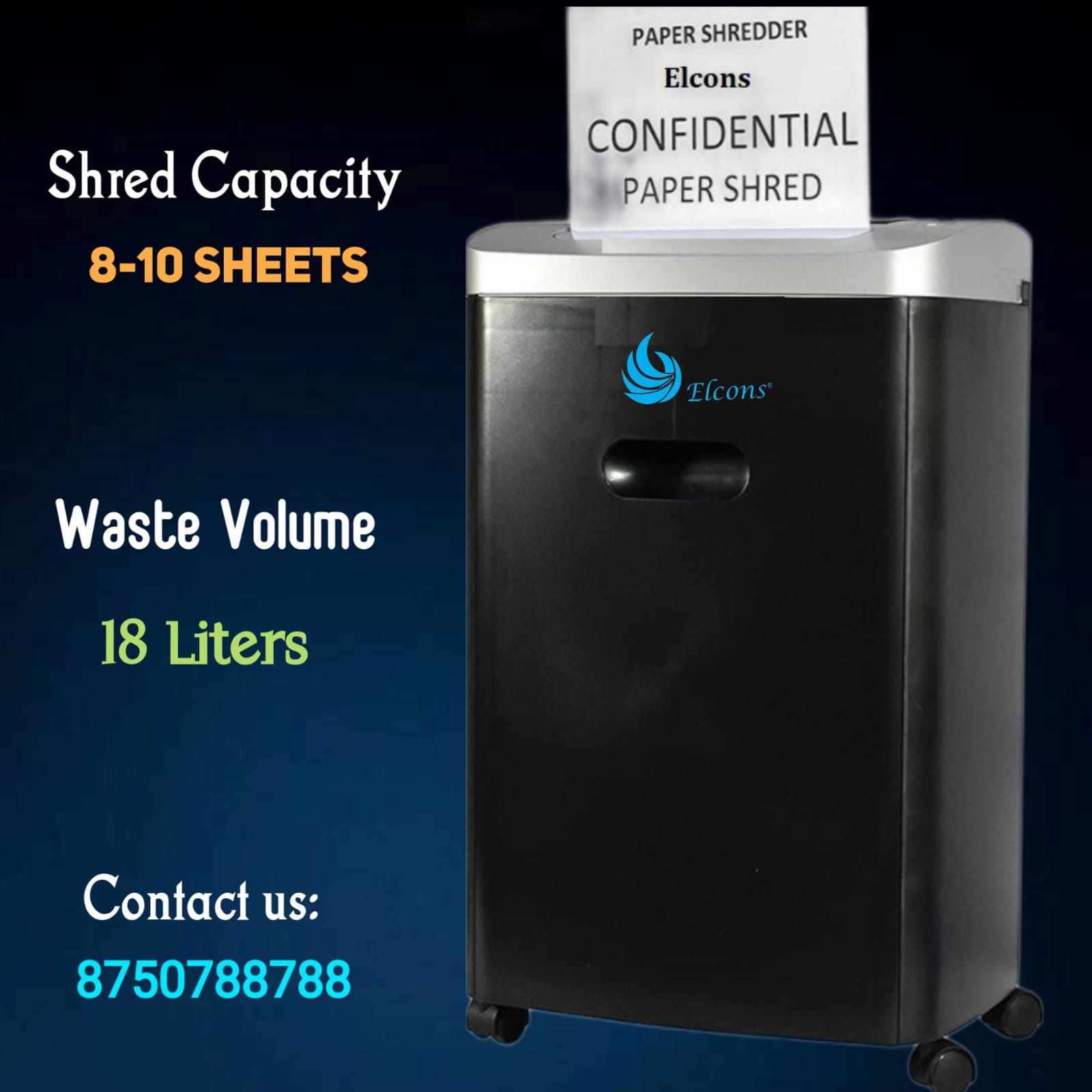 Shred capacity -8 -10Sheets, Motor Power-150Watt,