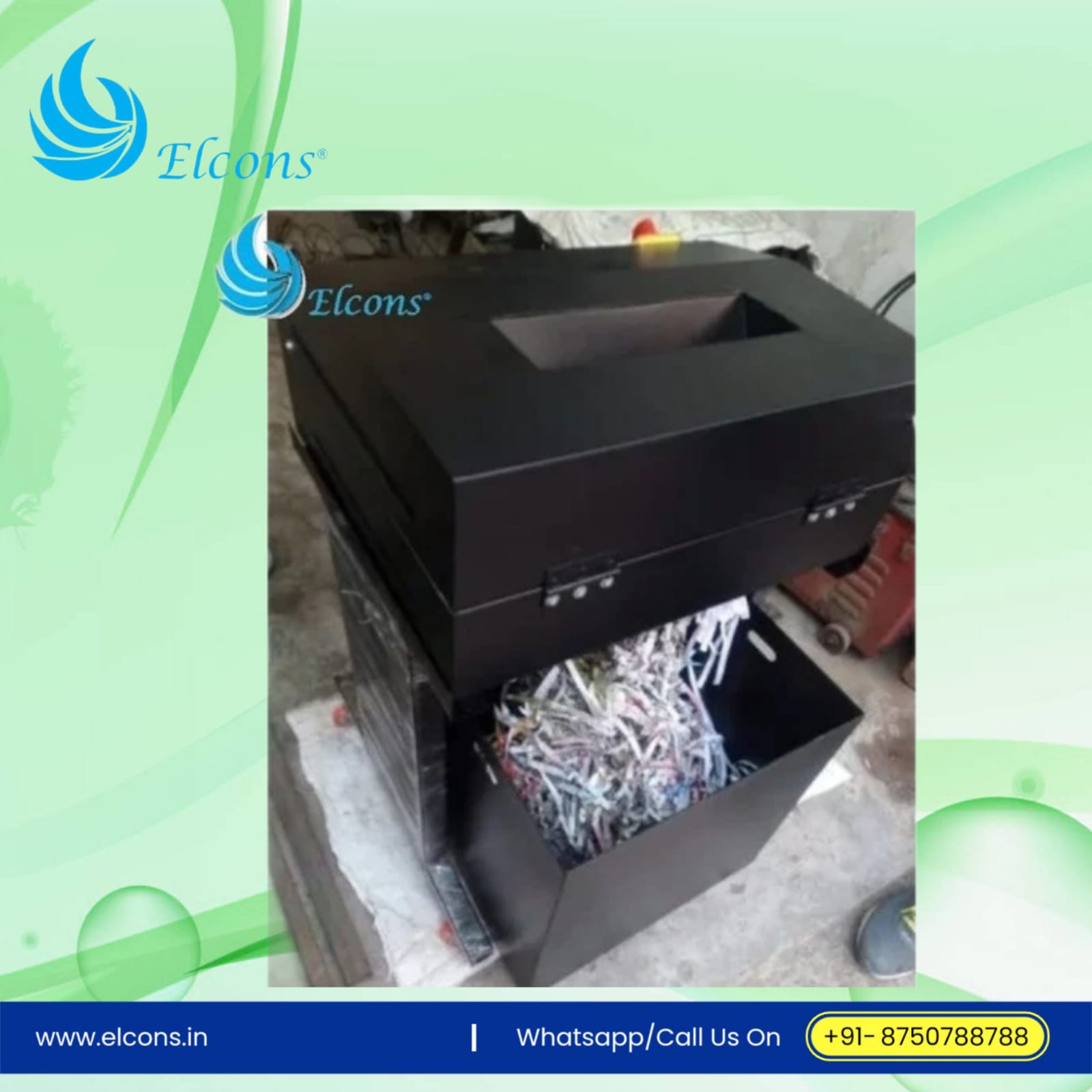 Shred size 8mm/12mm., motor power (1HP) single Phase,